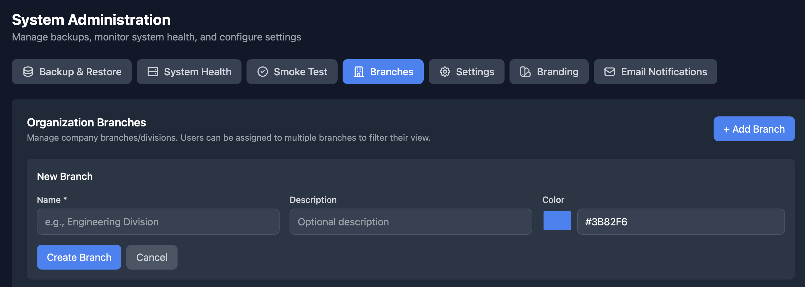 System Admin → Branches