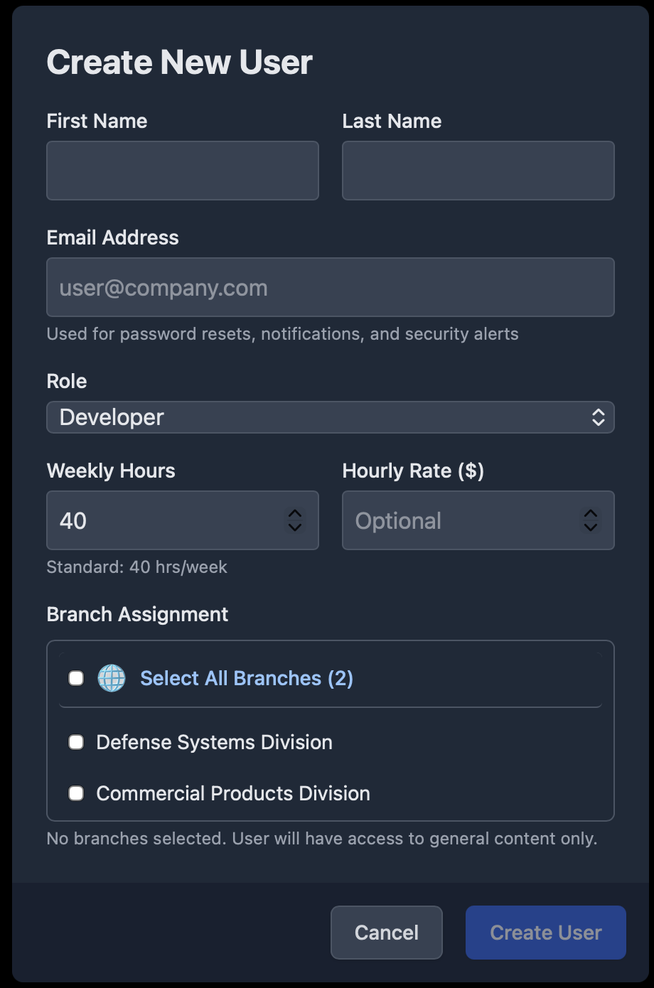 - Users can be given access to specific branches based on their role